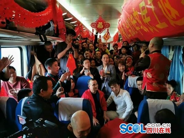 本次返乡专列,省总工会还为返乡的川籍农民工朋友们分别准备了接、送站礼包,组织了200余名职工志愿者,从组织进站登车,到跟随专列在途中开展活动,再到下车分送到家,全程为返乡农民工提供政策宣讲、维权服务、文娱活动和后勤医疗保障等全方位的工会服务。