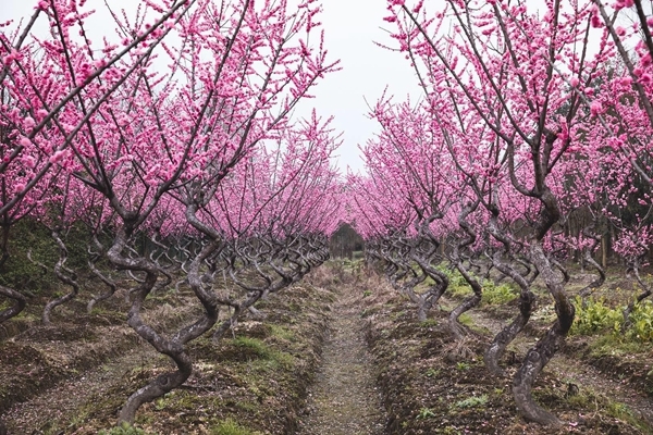 青城山下问花村紧邻106省道和成青旅游快速通道,距离成都60公里,距都江堰市区19公里、距青城山景区仅3公里。目前,问花村的各类梅花的已经竞相开放。
