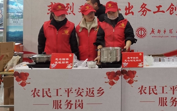 四川在线消息(侯思宇 张杨 记者 郝勇)“叔叔,提行李多,我来帮你吧。”“吃早餐了吗?这边有免费的汤圆哟……”在成都东站客站,头戴“小红帽”的职工志愿者们,为返乡农民工旅客送上一碗热气腾腾的汤圆,或送上新春福袋和矿泉水。服务岗上,职工志愿者还向返乡农民工提供法律咨询等志愿服务。1月19日记者从成都市总工会获悉,成都市总工会在双流国际机场、成都东客站、成都火车北站、汽车客运站等站点,设立6个“农民工平安返乡服务岗”,为返乡农民工提供志愿服务。