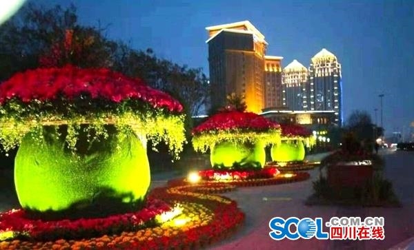 据悉,为体现春节特色,营造浓浓年味,郫都区综合执法局在在红光大道、南北大道、望丛中路等城区主要道路上装饰大灯笼3000余套,小灯笼5000余套,满天星灯饰1680组,灯带2000余米,在百伦广场、市民广场、317国道、成灌东出口等城区10余处主要节点打造鲜花景观,同时增设立体花瓶等景观造型,丰富景观层次,为广大郫都市民和归郫人员营造一个喜庆、祥和的节日氛围。
