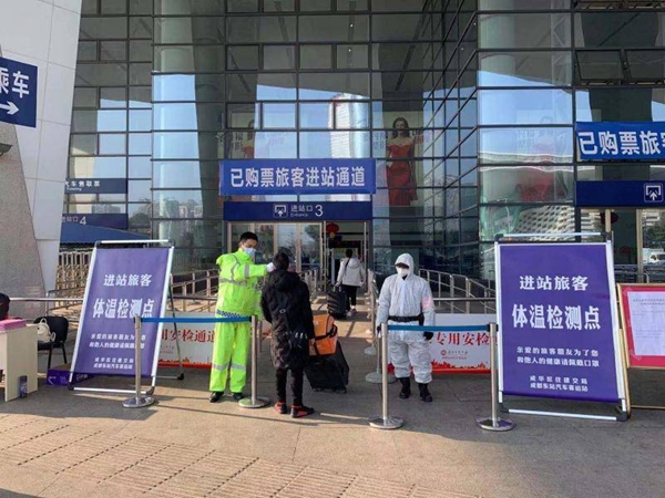 “根据综合交通枢纽出入口分布和客流情况,我们在火车东站、汽车站主要出入口,共设置了8个(火车站6个,汽车站2个)体温重点检测点、2个体温异常人员休息区,开辟了武汉来蓉旅客专用测温通道,既保证隐患排查不漏一人,也要避免进出站通行受阻。”成都东客站管委会党工委书记孙学东告诉记者,指挥部与公安、应急、卫健建立了联防机制,整合铁路人员、民警、武警、医务人员、党员义工等多方力量,成立了体温检测组、身份识别组、秩序维护组、复检转运组等工作小组,实现了人员统筹调配,科学布控,定点排查,形成了主要通道、重点地段防控网全覆盖,确保东客站片区疫情防控工作有力、有序、有效。