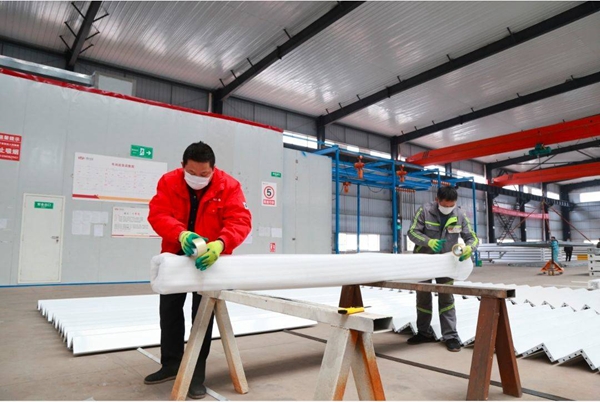 宋军是大英县四川浩石模块化房屋科技有限公司的职工。大年初一一早,他和30名工友就返回了工作岗位,生产支援武汉火神山医院、雷神山医院建设的箱式房屋。“能为武汉做些力所能及的事情,大家都很开心。”他说。