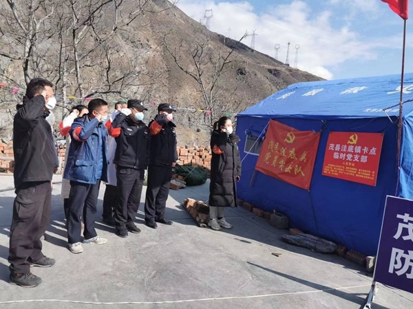 为加强疫情防控,茂县充分发挥基层党组织的战斗堡垒作用和党员干部先锋模范作用,分别在南新、叠溪、东兴和洼底卫生防疫卡点成立4个临时党支部。为全力做好新型冠状病毒感染性肺炎防控、医疗救治工作,茂县卫生系统、公安系统、镇村抽调123名党员干部,并把支部建在了第一线。