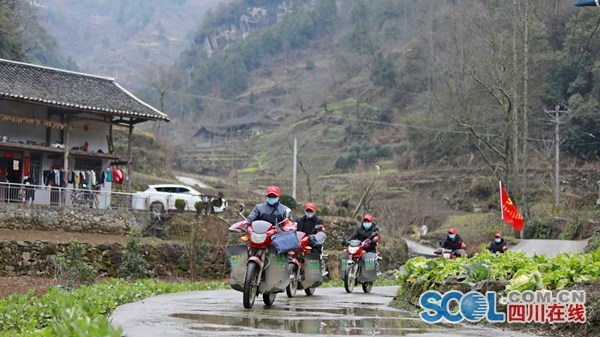 与万山乡邻近的水磨乡还成立了摩托志愿服务队,党员干部们拉着拉杆式音箱走村入户。