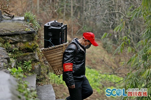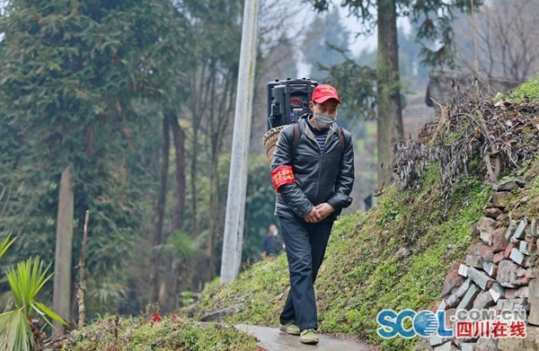 说干就干。从1月31日起,他每天背着音箱,带上自备干粮,走村串户。走完蒙溪村7个组,要走10多公里,陈加谷上午走4小时,下午走4小时,大家给他取了个响亮的名字——“背篼宣传员”。