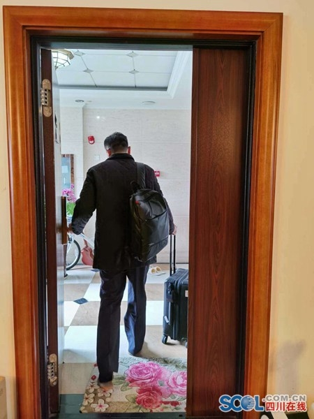 当日上午,成都市龙江路小学三年级学生张潇之在父亲张伟临行前,特别正式地穿上校服,向父亲敬了一个队礼!