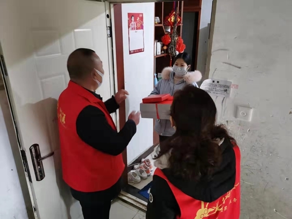 文庙社区居家观察人员陈会英,2月2日是他父亲85岁寿辰。黄甲街道高丽琼副主任、文庙社区党委书记叶云昌特地送去了一份在特别时期的温暖的生日蛋糕。陈会英一家表示十分感动。