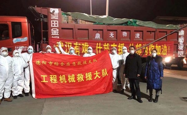 “我们是德阳市社会综合应急救援支队工程机械应急救援大队,主要参与自然灾害的工程救援。但是,当前面对全国上下万众一心共同抗击新型冠状病毒感染的肺炎疫情的关键时期,什邡市工程机械应急救援中队10名队员主动请缨,自愿用自己的工程车把什邡老百姓捐赠爱心蔬菜运输到武汉去……”德阳市社会综合应急救援支队工程机械应急救援大队大队长李元平告诉记者。