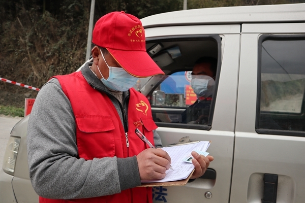 四川在线消息(文敏 范祥 记者 尹勇)2月2日,在平武县龙安镇金色家园小区(南岸社区)的党员志愿网格化疫情防控登记点,家住该小区的平武政协副主席嘎啦茶正在社区物管的配合下,耐心细致询问每一个进入小区的人员,并做好详细的登记。与他一同值守在这个点位的还有来自县政协的任忠丽、县委统战部的王会等共8名党员。