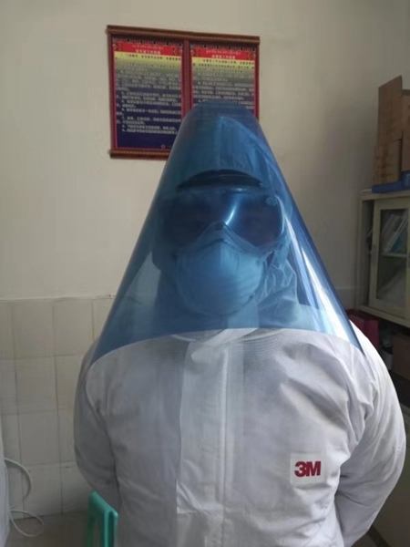 白云润和同事使用的防护面罩,是壤塘县藏医院放射科医生吉平自己做的。