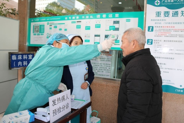 四川在线消息(记者 林凌)“您哪里不舒服呢?最近有没有去过武汉,有没有接触过来往武汉的人?”2月2日上午,穿着防护服的雒国斌在广元市第一人民医院设置的临时发热病人预检分诊处,仔细询问一位发热患者。