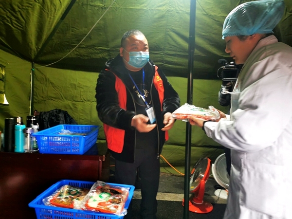 当在成都第二绕城高速清流出口进行医学排查的清流卫生院医生尹春燕拿到热气腾腾,两荤一素的盒饭时,感激地跟郑维国说:“谢谢,辛苦你们了”。