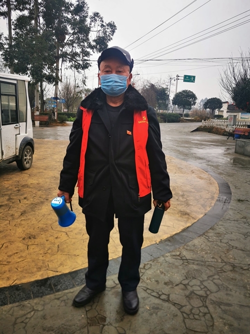 还有一位84岁的老党员王家其,每天穿着志愿者的“红马甲”,作为九龙村党员义务宣传小分队一员忙前忙后。通过小喇叭,他和另外8名老党员用自编的顺口溜在村里内宣传防控知识,提高公众自我防护意识。每天行走上万步,最高记录是52200步。