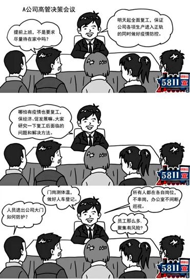 “在做好社区居民疫情防控的同时,我们正在加大宣传,积极协助企业有序推进复工复产。”青龙街道昭青路社区党委书记闵艳表示,社区在前期走访摸排中,了解到很多企业对复工复产有想法,也有不少顾虑,为此社区联合共建单位在认真学习相关文件精神的基础上,共同创作了这组针对企业复工的宣传漫画,帮助企业理清思路,明确复产复工的工作重点和注意事项。