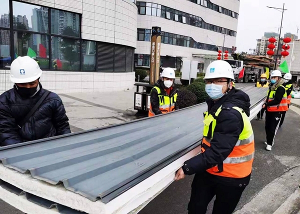 梁栋是中建八局青岛公司西南分公司总工程师,此刻成为该项目的应急工程指挥长。“金牛区人民医院是两年前我们完工交付的项目,非常时期,政府和医院又把如此紧急的任务交给我们,是对我们极大的信任,我们决不能辜负期望,克服种种困难,尽早保质保量建成。”