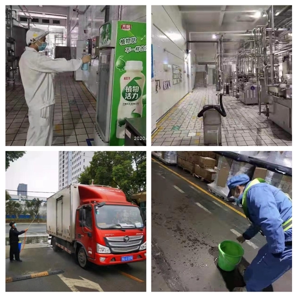 据介绍,光明乳业公司成立了疫情防控工作组,明确责任领导、责任部门、专职人员,落实复工复产方案做好没有、复工复产准备工作怎么验收、全面隐患排查做没有做、核心管理人员到了没有、员工上班怎么来、关键岗位不齐怎么办、疫情防控怎么办、口罩等物资够不够、员工住宿就餐怎么办等“企业复工复产10问”,制定“防疫复工运行图”,在全省突发公共卫生事件一级响应解除前,光明乳业明确了疫情防控责任,按照以下要求做好日常防控管理:上下班测体温,全员戴口罩,公共空间全消杀;分散就餐,生活垃圾集中处理;不开展集聚性活动,员工不聚餐聚会;经常开窗通风,保持空气流通,尽量不开中央空调,不开非独立的新风系统。