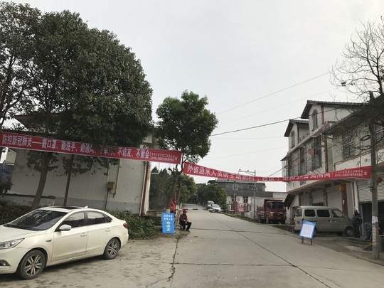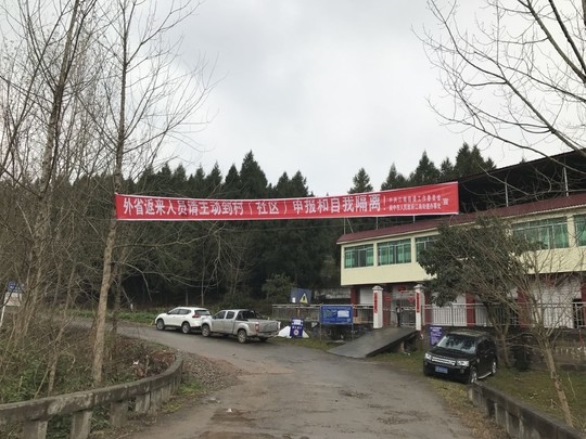 神隍垭村高观山村道入口,悬挂着防疫宣传标语