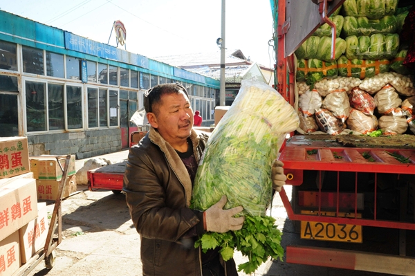 在红原县农贸市场,商贩们正在卸载从成都蒙阳市场运来的水果、蔬菜等物资。县市场监管局副局长尓杰说:“除专做活禽售卖的商户外,其余商户正陆续回到市场营业,为牧民群众们提供基本的日常果蔬以及肉类供应。”目前,已有近30家商户在正常营业,虽然商户数量不多,但是种类齐全。