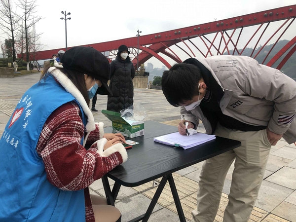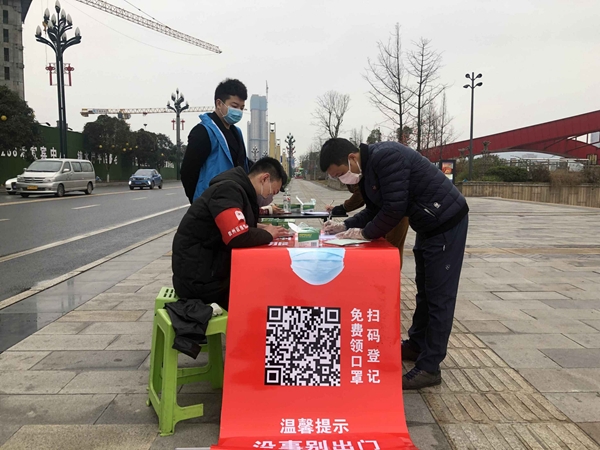 “排好队,互相之前间隔1米以上。”2月6日上午,在宜宾市叙州区长江公园入口处,市民们在社区工作人员及志愿者引导下,间隔一米,有序领取免费口罩。