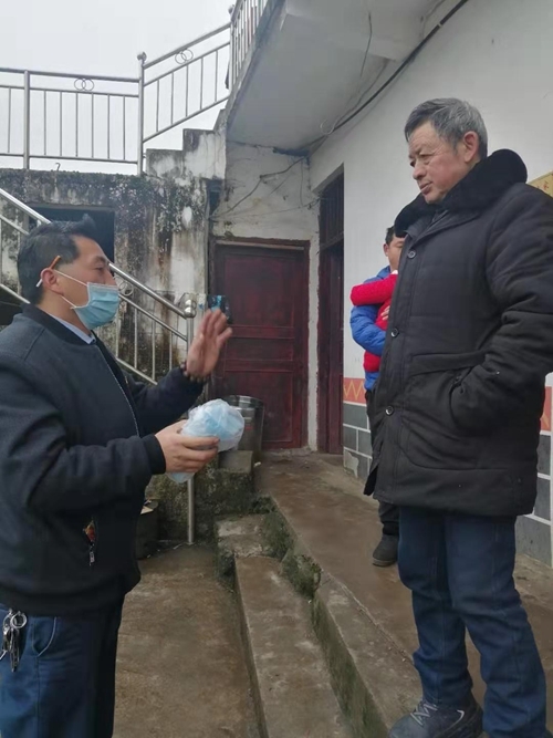 邹崇彬深入群众家中宣传疫情防控要求,并发送口罩。