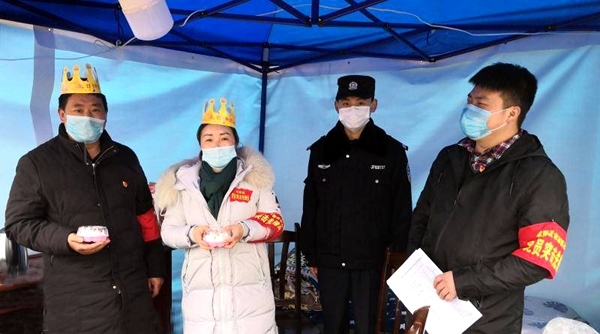 一名老村主任和一名现任村党总支书记,从新型冠状病毒肺炎疫情防控工作开始以来,就一直坚守一线,查车辆、劝群众、作宣传、严防控。往年生日,“都是和家人一起过节、庆生,但今年情况特殊,能这样过生日也很有意义。”向世琴说,下午3点过,经家人提醒,她才想起今天是自己的生日,“老主任也是同一天呢”,她赶紧请家人去食品店买了两个小蛋糕,一起在点位的篷子里过了一个简单的生日。她说,老主任一直是自己的榜样,多年来持续“传帮带”,让她明白一个基层干部的责任与担当,“元宵节还可以和老主任一起战斗在一线,值了。”