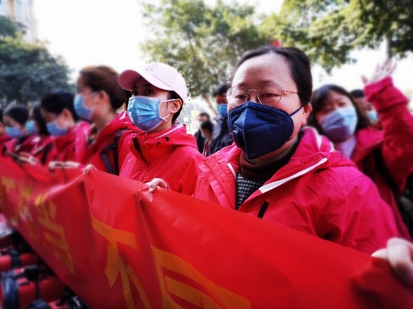 这支30人的医疗队由呼吸、重症、感染、护理等相关科室人员组成。上午10点30分,30名医护人员集中在德阳市卫健委,做出发前的最后准备。她们整理着已经整理好的行李,和亲人、同事合影、拥抱,倾听亲人和同事的叮嘱。