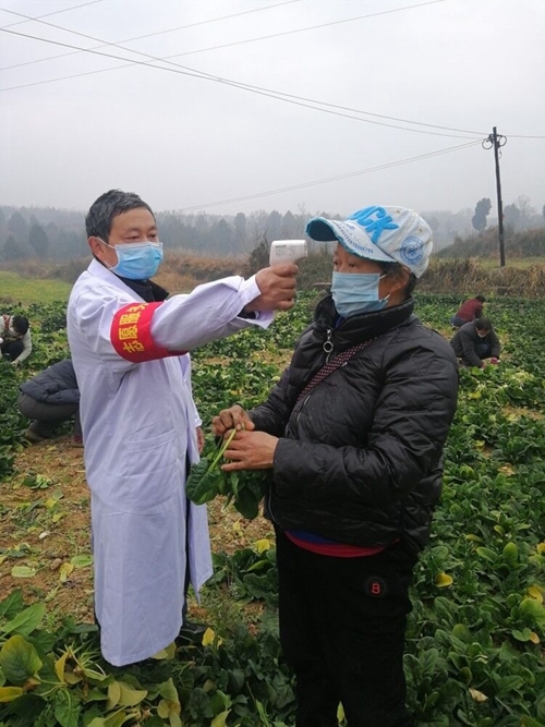 农民忙农活,防疫要跟上。下地前合作社认真排查每一名用工人员近期防疫情况,村卫生站还派出人员,到田间地头督促农民佩戴口罩,现场测量体温,并建立台账。农活结束后,村卫生站指导合作社对场地、人员进行消毒,妥善处理口罩、编织袋等废弃物。