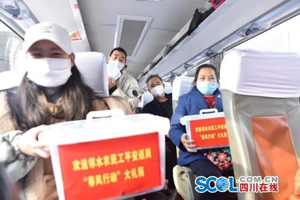四川在线消息(孔虹 记者 何浩源)2月12日上午10点,邻水县3辆“春风行动”返岗专车从邻水县汽车客运中心出发,前往广东省惠州市、淡水市,车上乘坐了邻水节后首批集中到外地返岗的81名人员。