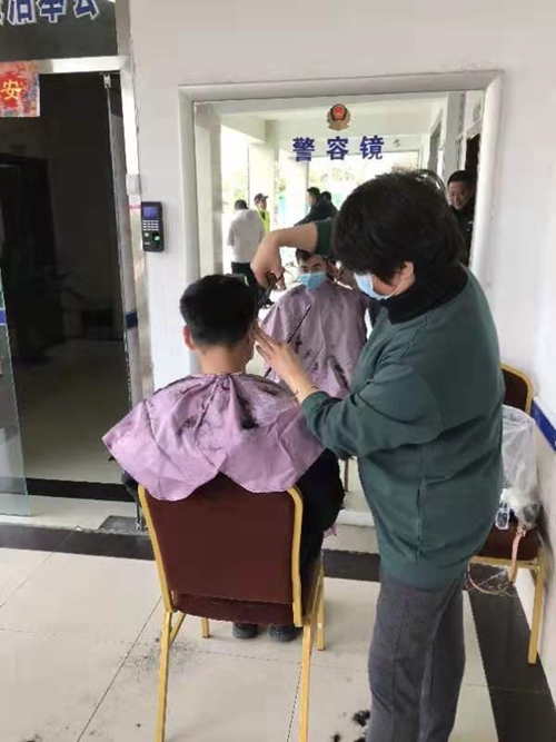 2月11日中午,四川省高速公安一分局六大队来了一位特殊的"嬢嬢"理发师,这位62岁的嬢嬢是该大队民警冯雪飞的母亲。这个春节为打赢疫情防控战,六大队全体民警全力以赴奋战在防控一线,连续作战,加之许多理发店推迟开业,民警们的头发逐渐变长而无处修剪。冯雪飞的母亲原来从事理发工作,想到儿子全单位的小伙子都是这种情况时,母亲便从成都来到都江堰,自己带上了已退役理发工具,亲自上门为大队30多名小伙子理发。