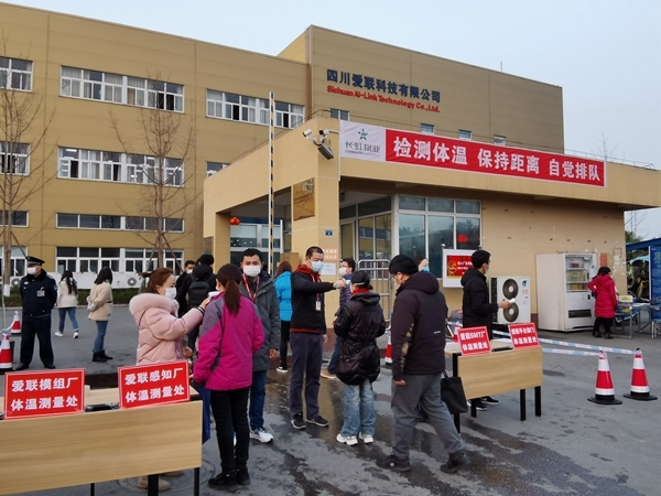 四川在线消息(记者 朱雪黎)2月11日,长虹控股公司绵阳制造基地全面复工第二天,位于绵阳市安州区科兴路的四川爱联科技有限公司(以下简称“爱联科技”)恢复了往日繁忙:门口摆着一线员工招聘启事,陆续有人三三两两前来咨询。员工私家车停满路两旁,各种拉载原材料的货车相继抵达大门口。