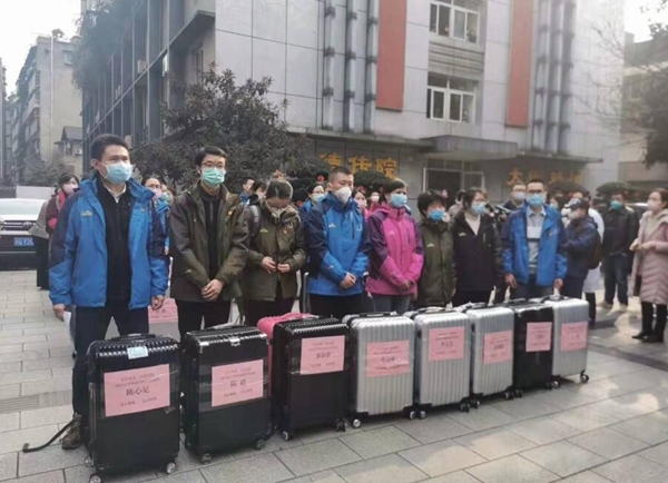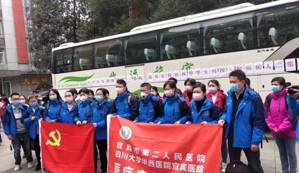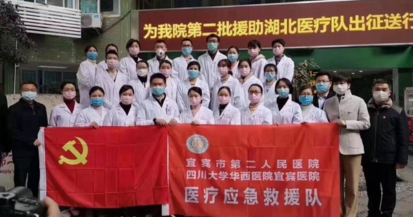 四川在线消息(曹洋)2月13日上午11:00,宜宾市第二批援助湖北医疗队集结出发。据悉,此批医疗队共28名队员,8名医生,20名护士,队员们全部来自宜宾市第二人民医院重症医学专业、呼吸专业、感染专业的业务骨干,队员们均主动请战,奔赴参与一线救援。