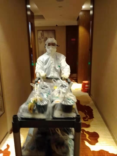 为了避免交叉感染,集中观察点实行全封闭管理。黎晓燕说,时间一长,大家难免会焦虑,甚至恐慌,所以除了观察、满足他们的生活需求,他们还需要充当知心伙伴,不断安抚隔离观察人员的情绪。“只要他们提出了要求,我们都尽量满足,尽力给予他们更多的关怀。”在这里每一个人都身兼数职,护士、护工、酒店服务生、心理咨询师、朋友、家人……