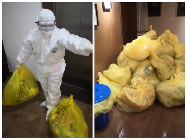 在集中隔离医学观察点,进入隔离区,需要穿上厚重的防护服,戴上口罩、帽子、护目镜和鞋套,为隔离对象测体温、开展医学观察,还要做好房间消毒及特殊医疗垃圾装袋处理。