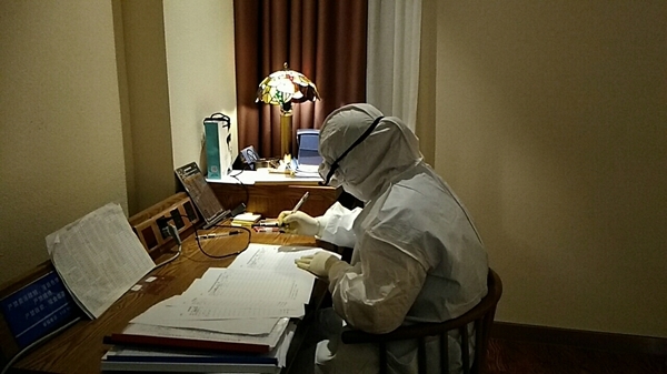 “每天工作繁忙,顾不上片刻休息。一天下来,浑身汗水湿透,就像洗过澡一样。”黎晓燕介绍,在全副武装状态下工作,人体出汗是不可避免的。由于疫情突然,口罩、护目镜、防护服等物资都会紧缺,为节省防疫物资,每位医护人员穿上防护服后,在隔离区内必须坚持不吃不喝不上厕所,一待就是十几个小时。