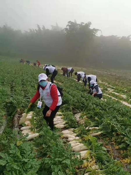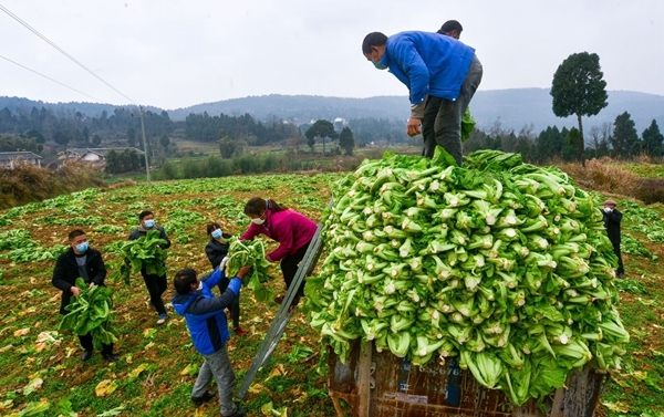 “等把这一片儿菜收完后,我给大家再测一次体温……”2月8日,广安市妇联组织40多名巾帼志愿者和义工一起到岳池县石垭镇新农庙村丰发农业有限公司蔬菜基地里帮助企业及时采收和运输蔬菜。