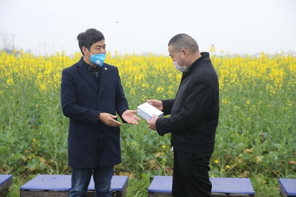 当天,蟲鑫蜂业合作社负责人王顺还专门赶到邛崃高埂街道九龙村,为鲜中跃、徐春玉夫妻俩送来了口罩。据了解,疫情发生后,四川唯一一家“国字号”蜂业示范社——蟲鑫蜂业合作社,在向抗疫一线工作人员捐赠口罩的同时,还互帮互助为广大合作社社员赠送了2000多个口罩,勉励广大社员做好自身防疫,抓好蜂蜜生产。