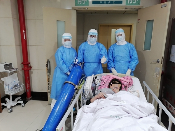 四川医疗队在有限的条件下,不断创新治疗手段来应对氧气不足的现实问题。华西医院的罗凤鸣教授创造性地提出用“传统高流量+面罩钢瓶供氧”或“无创呼吸机+鼻导管钢瓶供氧”方式来提高病人氧合,简单易操作,临床反应很好。