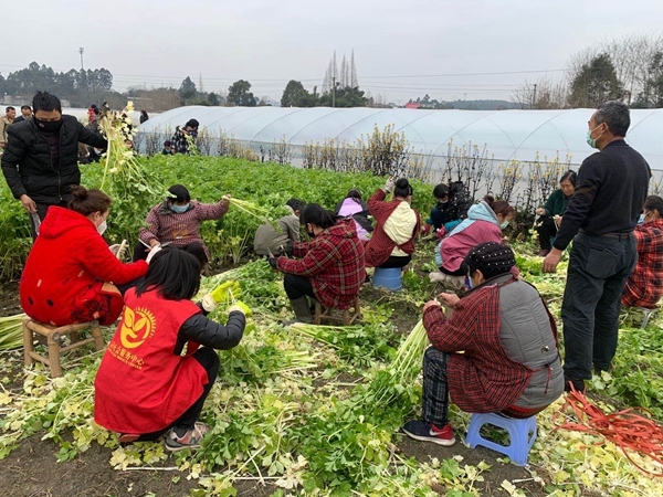 早晨八点,天刚蒙亮,雾水还未来的及全部退去,参加活动的志愿者、益行社工就跟随村委干部自带劳动工具来到了农间地头,1组拔萝卜,2组扯芹菜,3组就摘厚皮菜,4组就捆绳,5组负责将菜装袋,在大家共同努力下,中午12点,3000斤萝卜、2.1万斤芹菜、6000斤厚皮菜就全部打包完毕后,交由各负责人送给顺丰员工统一装成一挂车发往目的地。