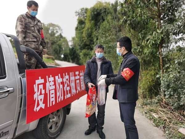 “我家缺东西,上午给村上打了招呼,没想到他们下午就给我们送拢(到)了,东西全是我要的,价格也是我讲的,这样的服务太周到了,只是这些小伙子太累,我们太感谢了!”2月16日,南充阆中市鹤峰乡村民庞水元在家门口收到了订购的蔬菜肉类及各种日常用品。
