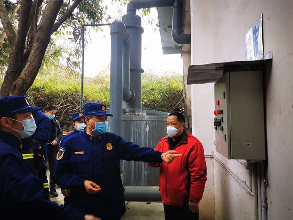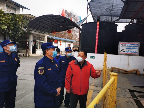 2月18日上午,由成都消防救援支队支队长喻平文带队的消防技术服务组,来到位于都江堰市的久业化工开展检查。一行人先后走访了生产区域、库房、办公室等,就消防设施设备是否正常运行、是否制定有应急预案、员工安全作业是否有保障等进行了全面检查。