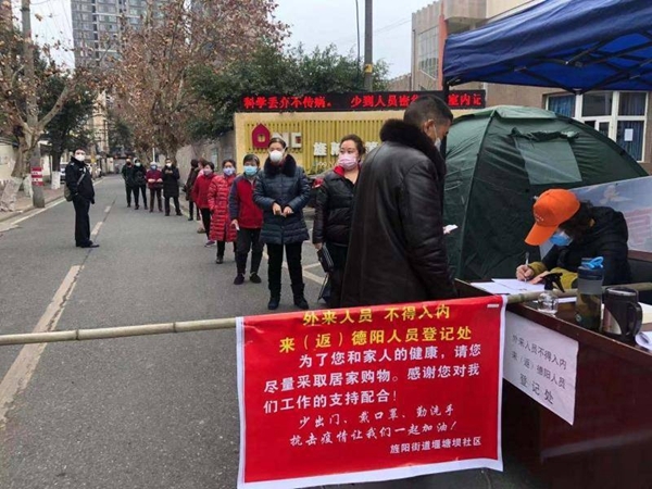 连日来,232名党员志愿者在社区组织和15个临时党支部的统一领导下,与街道、社区工作人员并肩作战,对德阳市旌阳区、经开区社区的各个小区进行全覆盖走访摸排,重点核查外出返乡人员情况;对小区所有进出人员测体温、问去向,坚持“零报告”制度。