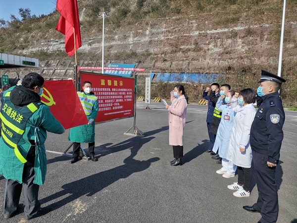 “我志愿加入中国共产党,拥护党的纲领,遵守党的章程,履行党员义务,执行党的决定,严守党的纪律,保守党的秘密,对党忠诚,积极工作,为共产主义奋斗终身,随时准备为党和人民牺牲一切,永不叛党。”2月21日上午10点,自贡市荣县南高速出口处,该县市场监管局高山所科员税子豪、县公安局乐德派出所民警李泽熹、县人民医院呼吸内科医生李霞、县中医院护士陈静、县交通运输局建设管理股工作人员许亮在领誓人余文科的带领下,面对鲜红的党旗,举起右手,郑重宣誓入党。