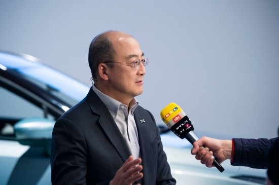 爱驰汽车联合创始人兼总裁付强现场接受外媒采访