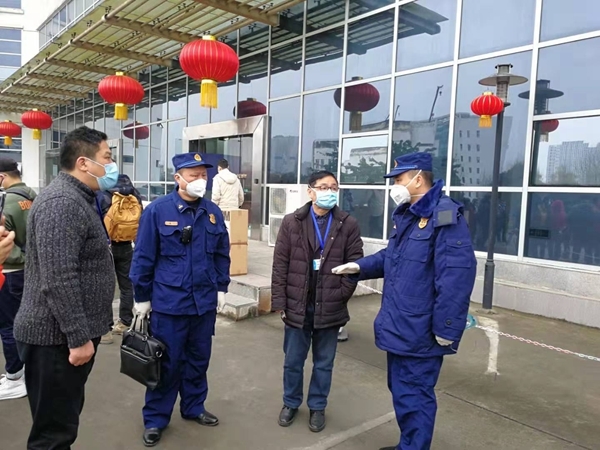 “公共区域和病房务必增加消防疏散示意图。大队可以提供模板给你们。”2月14日,戴着口罩、手套等防护设备,锦江区消防大队长胥鸿飞领着指导组走进成都市公共卫生临床医疗中心。这是他们第三次踏进这家定点收治确诊新冠肺炎病人的医院。看消防系统完备率、看微型消防站整备情况,技术指导组不放过任何一个细节。在隔离病房区域,胥鸿飞发现,因治疗需要,这里集中使用着大量医疗电器,“高负荷用电存在一定隐患,一定要对机房实行24小时值班,对电器线路定期检测巡查!” 胥鸿飞对医院消防安全负责人说。在多次技术指导中,胥鸿飞他们为这家医院提出了12条消防安全意见和建议,并帮助迅速整改到位。