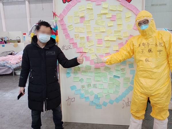 第二次检测结果一阴性一阳性,为响应政府号召,林成随之入住汉阳国博方舱医院,却再次陷入恐慌与无助的情绪之中,病症这样害怕再有什么跌宕。自林成入住方舱医院以来,因为一阴一阳的病症,每日沉浸在无助和忧虑之中,饱受着身体与精神的双重摧残。成都市中西医结合医院王巍医生时时鼓励他振作,委托同事悉心照料,也时常询问用药情况,医者既“医身”又“医心”,逐渐地两人便成为了亲厚的友人。