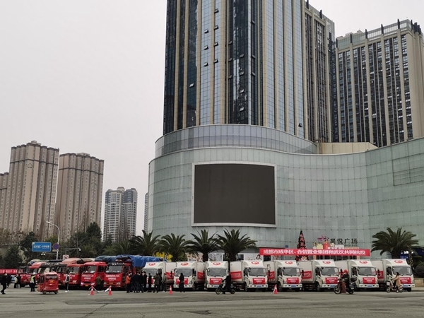 “蔬菜不够,我们来送!”“营养不足,我们来加!”继2月中旬向武汉捐赠价值约500万元的爱心物资后,成华区一企业又定向捐赠给武汉社区一批肉类、蔬菜等急需物资。3月5日上午10时许,17辆满载爱心的大卡车从成都市成华区龙潭街道的上古天地·星悦广场出发,星夜兼程驶向武汉。据介绍,这批物资约230吨、总价值约200万元,包括12吨大米、7000只鸭子以及200余吨新鲜蔬菜。新冠疫情发生后,该集团已向四川本地和湖北武汉累计捐赠总价值约1300万元的防疫、医用、生活等各类物资。