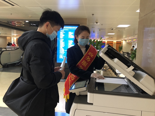 同时,该区实行智能引导“一码通”、“看、问、测、核、办”五步工作法和健康情况“自主申报+智慧管理”,大厅内办事群众减少约80%以上,有效减少了人员聚集。开通绿色通道“快速办”涉疫审批153件,精准实施一站式全流程“多对一”部门手拉手链条式服务。