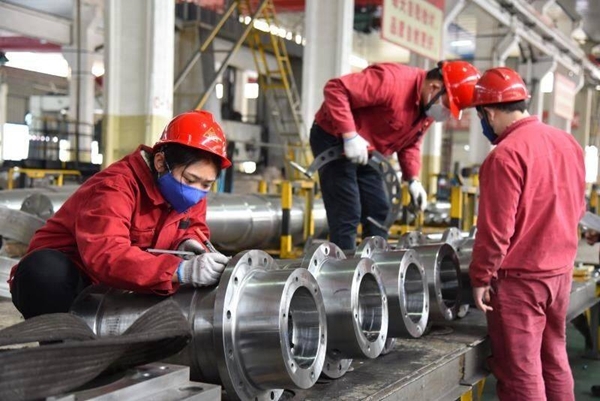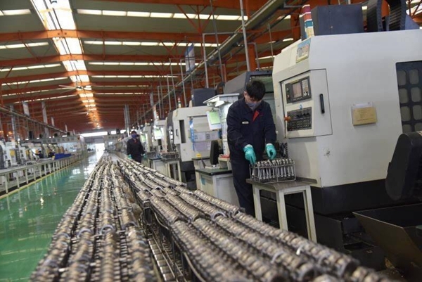 在成都大宏立机器股份有限公司生产车间看到,员工们佩戴着口罩,正在各自的生产线上有序地忙碌着。“公司有600多人,目前复工率和产能均已达到100%,每月产值可达5000万元。”该公司常务副总李泽全介绍。