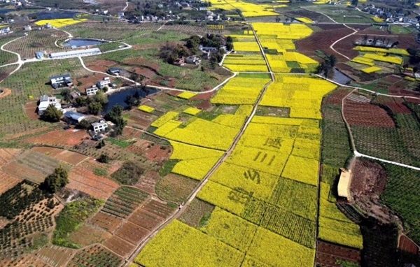 金堂县三溪镇地处龙泉山脉丘区,因地势起伏,每到花开时节,金色的油菜花像一条条金黄的绸缎,环绕着山峦,错落有致,颇具层次感,深受摄影爱好者和徒步旅游爱好者的青睐。连日来,气温逐渐回升,田野间已悄然换上金黄衣装,片片油菜花陆续盛开,直到开成一眼无际的黄金花海,像金子般熠熠生辉,美成油画!