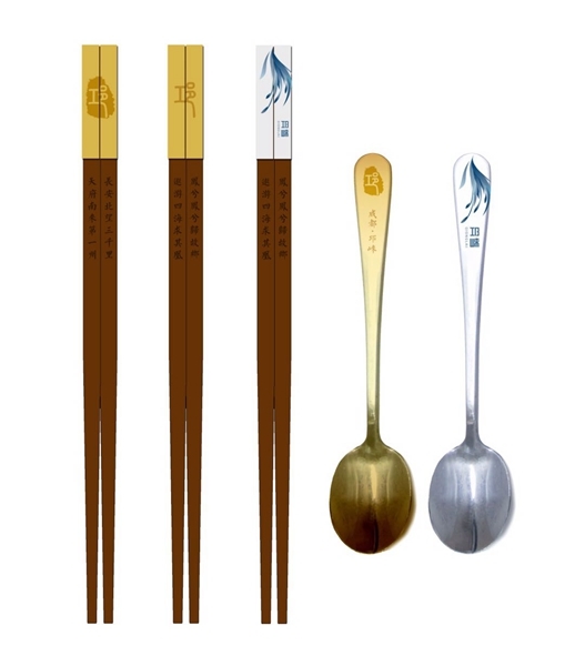 现推出的一款“文创公筷”,以邛崃的“邛”字代表临邛古城文化,以“凤求凰”logo代表邛崃文君文化,并结合描绘邛崃之美的古诗联对、辞赋佳句等,如:清代诗人吴江的诗句:“长安北望三千里,天府南来第一州”,司马相如的“凤兮凤兮归故乡,遨游四海求其凰”等。后续还将在现有的文创餐具上增加新款,比如:卓文君《白头吟》、司马相如《子虚赋》《上林赋》的一些诗文。希望通过这些文化创意餐具,让大家感觉分餐并没有让大家感情疏远,反而让餐桌变的更有韵味,更加有人情味儿。
